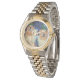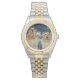 Den här klockan har guldkamrater som är klädda som älvor som håller trollspön i munnen.
