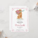 Dessa inbjudningar har en god vattenfärg porträtt i en Golden Retriever med en bukett av rosa blommor.