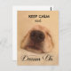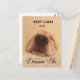 Det här vykortet innehåller ett foto av en sovande guldladdare i stängningen av hund. Fotot har en mjuk, drömmande kvalitet tillsammans med texten "Behålla Lugn och Dream On".