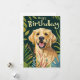 Golden Retriever Birthday hälsning. En leende Golden Retriever önskemål Grattis på födelsedagen. Perfekt för alla ägare av Golden Retriever älskare och Golden-hämtaren.