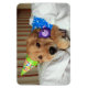 Har du varit trött efter att ha firat din födelsedag? Den här magneten har ett foto av en söt guldladdare som sitter i sängen medan den bär pyjamas och en party-hatt och håller sin nalle. Dags för sömn!