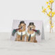 Det här kortet har guldfärgade hämtare som bär nyårshattar, kopplingar och blåsande noisemakers. Texten lyder: "Här hoppas att det nya året kommer att ge er allt ni önskar!"