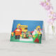 Det här födelsedagskortet har guldfärgade hämtare som är klädda som byggnad block leksak-tecken i en leksak-värld. De är trädgårdsodlare med en rullbarrow och ett blomsterplåster. Texten lyder: "Bygg dig en vacker värld. Grattis på födelsedagen!"