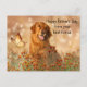 Lycklig Golden-hämtaren i en färg-passande bakgrund med liknande blommor och fjärilar önskemål en Lycklig Fars dag från människans bästa vän för den hund som älskar Pappa