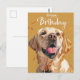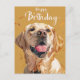 Golden Retriever Födelsedagsgratulationer. En leende Golden Retriever önskar Glad födelsedag. Perfekt för alla Golden Retriever-älskare och Golden Retriever-ägare.