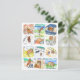 Greeting card with an image of twelve water color paintings of a golden retriever on adventures in the western U.S.A.