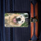 Ta bort ditt bagage i stil med den här unika märkrn! Utformningen innehåller ett foto av en leende hund för guldhämtning utanför en blomsterträdgård. Anpassa med ett eget namn eller en egen fras.