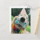 Skicka speciella födelsedagsgratulationer med detta söta kort! Designen har ett fotografi av en glad golden retriever hund som bär en festhatt och håller en "Glad födelsedag" benformad kaka i munnen. Anpassningsbar text på baksidan lyder, "Hoppas det blir en bra en!"