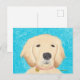 Golden Retriever Hund Postcard Blue Vatten Vykort