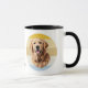 En porträtt av en vacker Hund av Golden Retriever är utmärkande för detta mugg. Bilden placeras på en baksida, något nedtryckt guld, solnedgång och blå rand, och skrivs ut två gånger på mugg. Ditt namn är i ett svart skript mellan bilder.