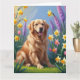 Golden Retriever Hund Vårblommor Målning Kort