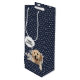 Kute guldkopieringsmaskin med vita daisy på vit polka dots och marin blå bakgrund för födelsedag eller andra händelser. Text kan redigeras.