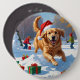 En glad Golden Retriever springa genom snövinteckan med en glad röd julhatt. Denna glatta utformning fångar rasens vänliga natur, lojalitet och lekfull anda samtidigt som den firar julhelgens värme och magi. En hjärtslitande vintertid fullt av festlig charm.