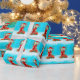 Guldfångare som i snö njuter av julklappar med jultomten hatt och christmas ljus är en perfekt-gåva för någon som kärlek i hund aveln i