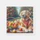 En guldladdare med röda bandanplatser intill en vicker basket i en fruktodling