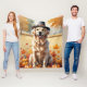 Golden Retriever in Höst löv Thanksgiving Art Fleecefilt
