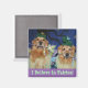 Den här magneten har gyllene hämtare som är klädda som älvor som håller magiska trollspön i munnen. Budskapet lyder: "Jag tror på Älvor".