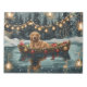 Sätt fart i julhelgens magi med denna vackert detaljerade illustration och visa en stolt hund sitta i en festivt dekorerad båt, som glider över en verklig jul sjö. Väntarna ljus från det närliggande gräs träd avspeglar sig utanför vatten och kastar en varm, feg glöd som förstärker den mysiga ambitionen. Ornament är farliga från båtens sidor, medan de lyser vägen och skapar en scen som fångar det verkliga kärnan i julens värme och glädje. Denna nostalgiska konst ger en aning helgdag magi åt vilket håll som helst, perfekt för dem som vårdar säsongens anda.