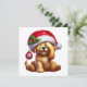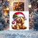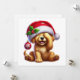 Sprid den festliga stämningen med denna bedårande Golden Retriever i en tomtehatt, som glatt håller i en julprydnad. Perfekt för hundälskare att skicka varma julhälsningar!"