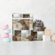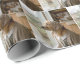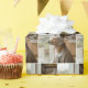 A golden retriever in vintage attire and a floral headscarf gazes wistfully out at the rain