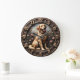 Celebrate your love for man’s best friend with this heartwarming wall clock featuring a high-definition image of a happy Golden Retriever. The dog is pictured sitting in a serene meadow filled with delicate pink and white wildflowers, rendered with a beautiful 3D-style depth. While the outer frame and numeric markers capture the rugged look of weathered bronze and carved stone, this is a lightweight and durable graphic timepiece. The design uses rich earth tones and metallic textures to create a sophisticated focal point for a living room, entryway, or mudroom. Large, stylized numbers and tick markers provide high contrast against the textured background, ensuring easy timekeeping. This high-energy design is a perfect self-gift for dog lovers and outdoor enthusiasts who want a polished, professional animal portrait that brings a sense of loyalty and nature to their walls.