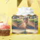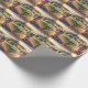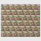 En gyllene kyrkoherde går längs en smutsig väg som bär en amerikansk flagga i munnen, där sol sätter sig över ett typiskt landsbygdslandskap