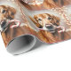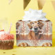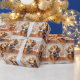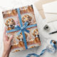 En gyllene laddare håller candy cane försiktigt mellan tänderna, omgiven av varmt, glödande ljus i bakgrunden