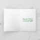 Det här kortet har en guldfärgad hämtare som är klädd som en julvaktare i rött och festive top hat. Texten lyder: "Hoppas din jul är god och ljus!"