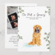 Share your joyful news with a sweet and heartfelt pregnancy announcement featuring a watercolor golden retriever proudly holding a sonogram photo. This charming design pairs soft greenery accents with the playful phrase “Our Pack is Growing,” making it perfect for dog-loving families announcing their newest arrival.
