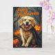 Golden Retriever-valp med pumpor Halloween Kort