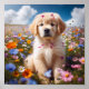 Golden Retriever-valpen med blommor Poster