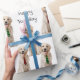 Cute Golden Retrievers med stripe neckties och Grattis på födelsedagen på vit bakgrund. Bakgrunden till färg kan ändras.