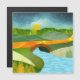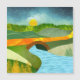 Abstrakt landskapsplats för en flod som går under en stenbro med rullande backe och en gyllene väg i fetstilt färg och struktur.