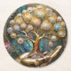 Golden Robot Hand Holding Guld Livets träd Underlägg Papper Rund