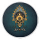 Golden Skull och dess Cosmic Secrets. Skallen sitter i stort mot en oändlig, blå bakgrund som påminner om universums mystik. Dess skakande guld avspeglar stjärnornas ljus, ge det till en nästan övernaturlig aura. En cirkulär ram svävar ovanför skallen och avslöjade en himmelsk scen: ett strålande sol vars gyllene strålar härjar i mörkret, planeter i majestät och mousserande stjärnor som lyser som diamanter i himmel nattetid.