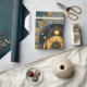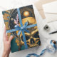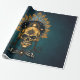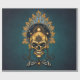 Golden Skull och dess Cosmic Secrets. Skallen sitter i stort mot en oändlig, blå bakgrund som påminner om universums mystik. Dess skakande guld avspeglar stjärnornas ljus, ge det till en nästan övernaturlig aura. En cirkulär ram svävar ovanför skallen och avslöjade en himmelsk scen: ett strålande sol vars gyllene strålar härjar i mörkret, planeter i majestät och mousserande stjärnor som lyser som diamanter i himmel nattetid.