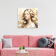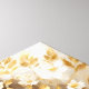 A serene portrait of a blonde woman with white flowers and gold leaves in her hair, eyes closed in peaceful repose.