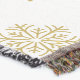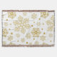 Juldesign med gyllene snöflingor och stjärnor på vit bakgrund