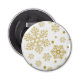 Juldesign med gyllene snöflingor och stjärnor på vit bakgrund