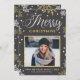 Det här festive helgdag-fotokortet innehåller guld och vitt snöflingor och din favoritbild. Lägg till informationen i mallformuläret. Funktionen "Anpassa" kan användas för att komma åt de avancerade menyerna så att du kan ändra typsnitt och layout.