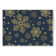 Hand-dragen guldfärgad snöflingor på en marin bakgrund