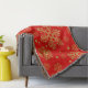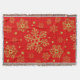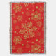 Juldesign med gyllene snöflingor och stjärnor på röd bakgrund
