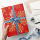 Golden snöflingor på rött presentpapper