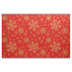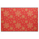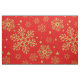 Golden snöflingor på rött tyg