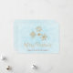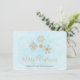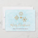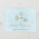Ett platt helgdag-kort i God jul med en illustration av finare golden snöflingor med elegant kristallina former. En frostiskt ljusblå bakgrund. Personlig namn på framsidan och personligen på baksidan.