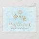 vykort för god jul med en illustration av finare golden snöflingor med kristalliska former av elegant. En frostiskt ljusblå bakgrund. Anpassa med ditt namn på framsidan och meddelandet på baksidan.
