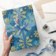 Ett fält av guldfärgat snöflingor flyter över en rik blå abstrakt på denna fantastiska vinteromslagning papper