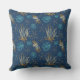 Golden Starfish & Coral Reef Mönster på Blue Kudde