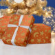 Golden Stars Måne Himlar Metallic Coral Orange Presentpapper