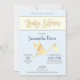 Elegant och söt pojke duschdesign. Med gyllene färg Baby Shower Calligraphy-skript och ett gyllene färg baby som bär stork med vitt polka dots och en mjuk blå bakgrund. Anpassa genom att ändra texten med dina egna detaljer eller klicka på Anpassa för att lägga till din egen beröring.
